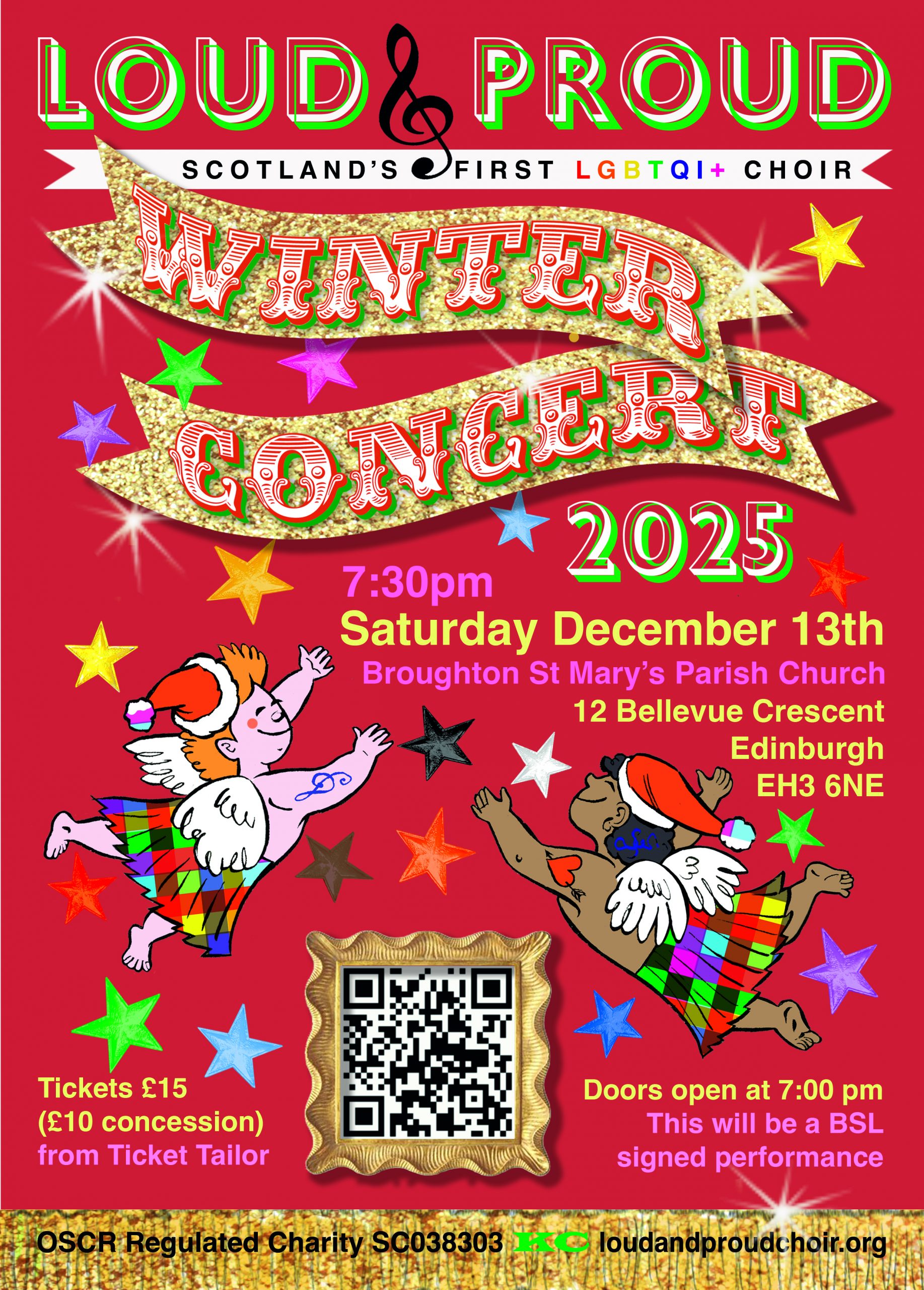 We are Scotland's first LGBT choir and have been singing together since 2005. We are an eclectic collection of people who have a wide variety of singing and musical talents. We rehearse every Monday evening in Stockbridge. We are always looking for new members.